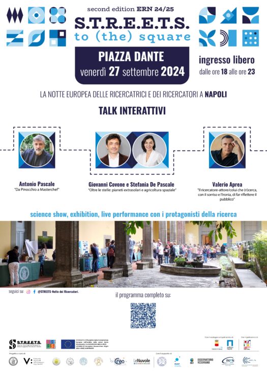 Domani 27 settembre a Piazza Dante la notte europea dei ricercatori 2024 con Valerio Aprea, Antonio Pascale, Giovanni Covone e Stefania De Pascale