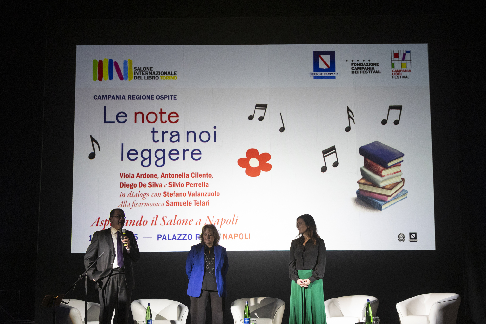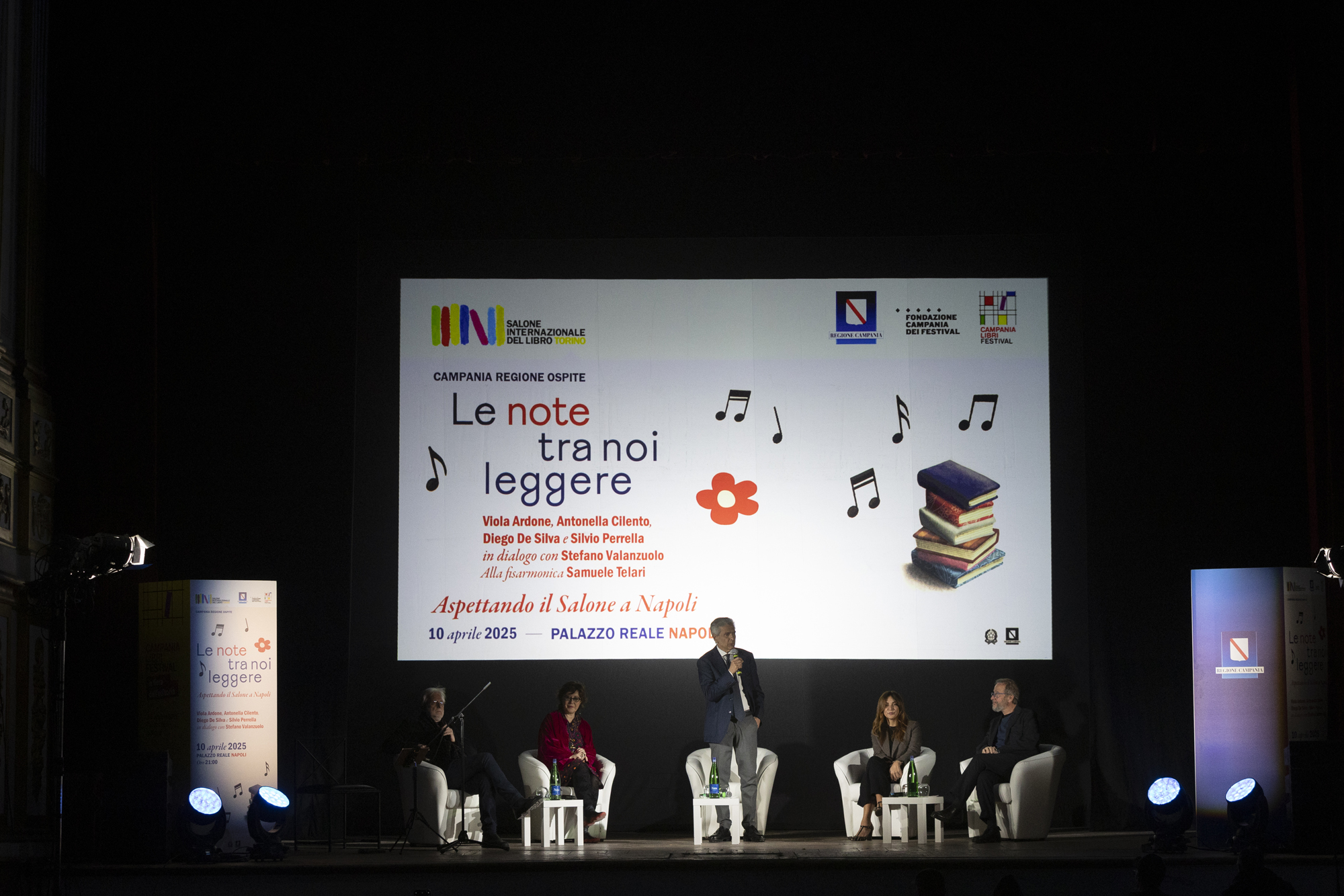 L’appuntamento Le note tra noi leggere. Aspettando il Salone a Napoli si è tenuto giovedì 10 aprile alle ore 21:00, presso il Teatro di Corte del Palazzo. Sul palco, le scrittrici Viola Ardone e Antonella Cilento, insieme agli autori Diego De Silva e Silvio Perrella: un’anteprima del loro ruolo da testimonial delle quattro giornate della quarta edizione di Campania Libri Festival – La Fiera dell’editoria.