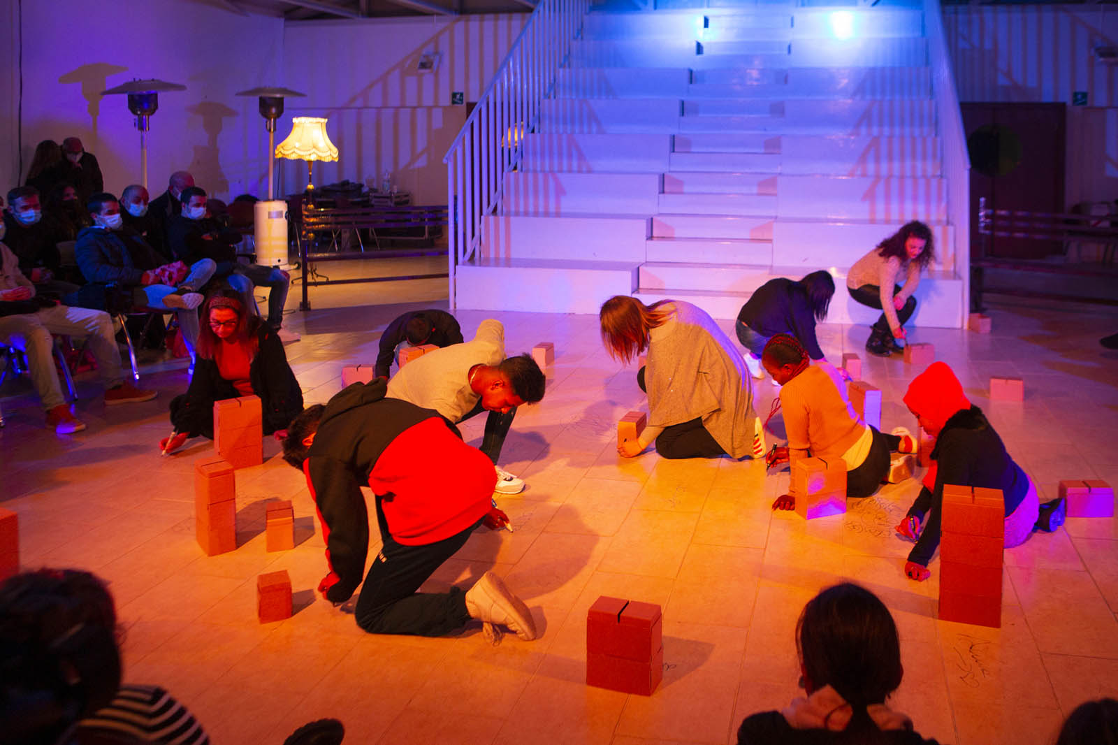 Laboratorio di creazione basato sul corpo, la poetica del movimento, l’oggetto e lo spazio scenico. Un’installazione composta da mattoncini di cartone, che costruiscono spazi interni ed esterni, servirà ad esplorare luoghi diversi con cui lavorare sulla geografia del proprio corpo e sulla sua storia. Un’indagine sul limite, gli orizzonti, la frontiera, la distanza, l’attaccamento e l’unione. Il nostro corpo contenitore e contenuto. Tanti universi umani che viaggiano verso un luogo comune di costruzione per abitarlo in relazione al fatto scenico e all’esperienza condivisa.