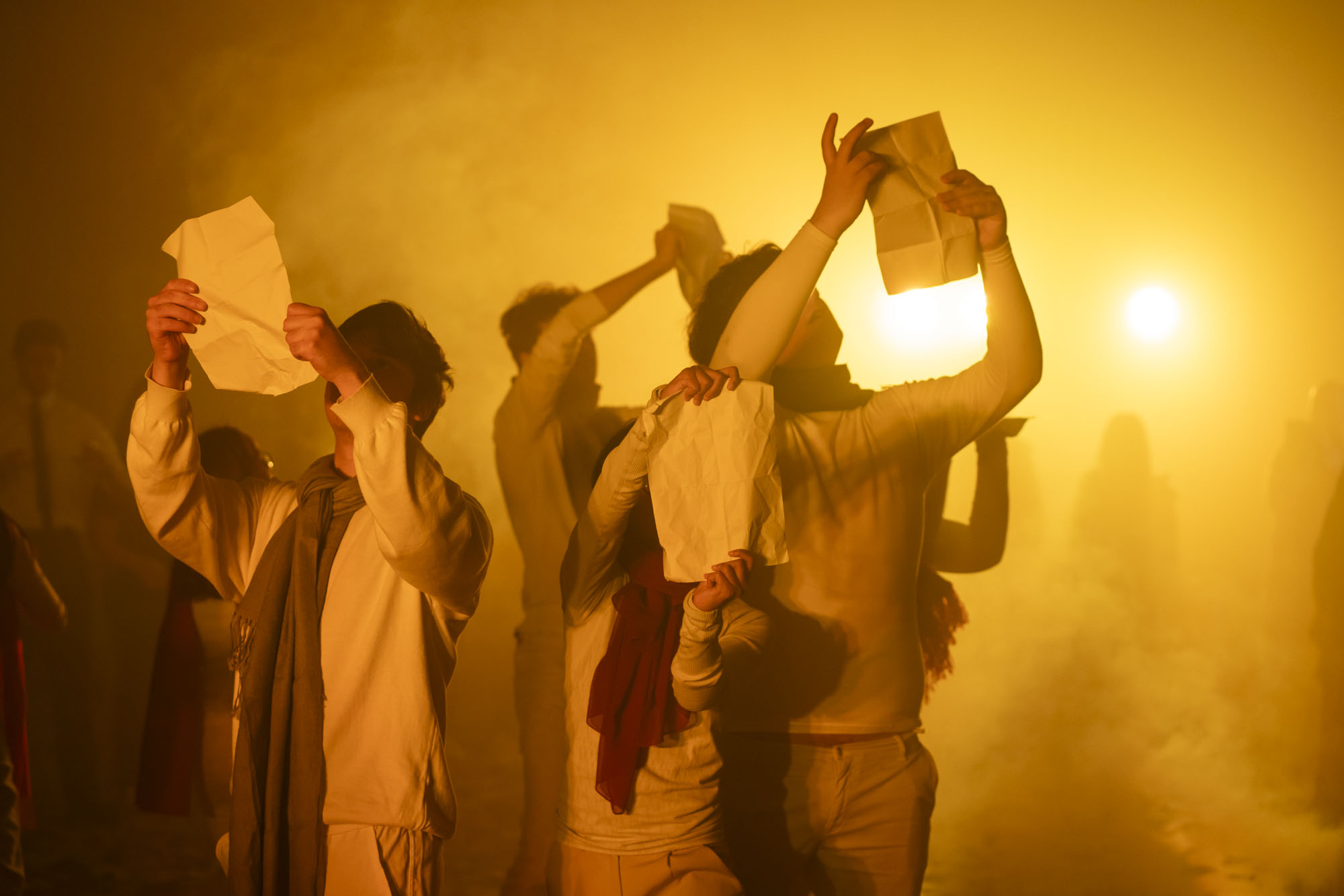 È più importante la legge degli uomini o la legge interiore, dello spirito? Quale etica seguire in tempo di guerra? Qual è la legge che deve prevalere nelle nostre decisioni come individui, come comunità, come popoli, come Stati? Le voci delle mille Antigoni che si sono levate nella storia dell’Occidente ci sono accorse in aiuto. Dopo il lavoro del 2022 sulla pineta di Castel Volturno, ormai distrutta, e sull’aggressiva e paradossale architettura locale usando il filtro delle Città invisibili di Italo Calvino; e lo spettacolo-performance del 2023, costruito a partire dal Moby Dick di Melville per indagare le emergenze del nostro momento storico; quest’anno siamo partiti dall’Antigone di Sofocle per chiudere una sorta di trilogia del confronto tra etica individuale e ambiente circostante.